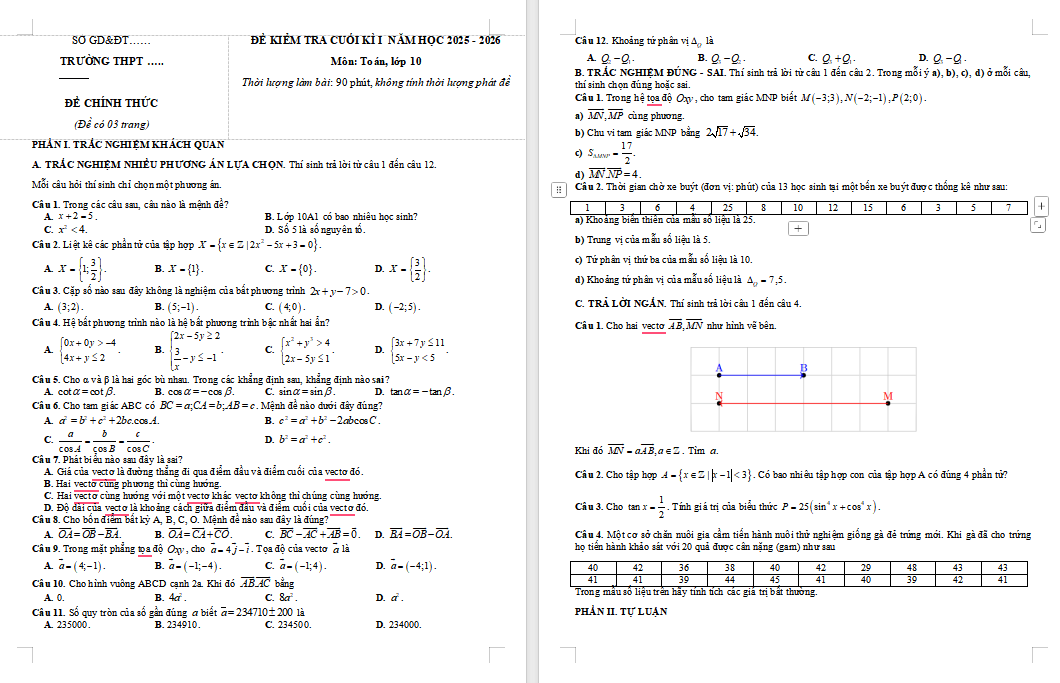 Tìm hiểu thêm »Đề thi học kì 1 môn Toán 10 Kết nối tri thức năm 2025 - 2026 mang đến 7 đề kiểm tra có đáp án giải chi tiết kèm theo ma trận, bản đặc tả đề thi. Qua đề kiểm tra Toán 10 Kết nối tri thức cuối học kì 1 giúp các bạn học sinh ôn luyện củng cố kiến thức để biết cách ôn tập đạt kết quả cao.