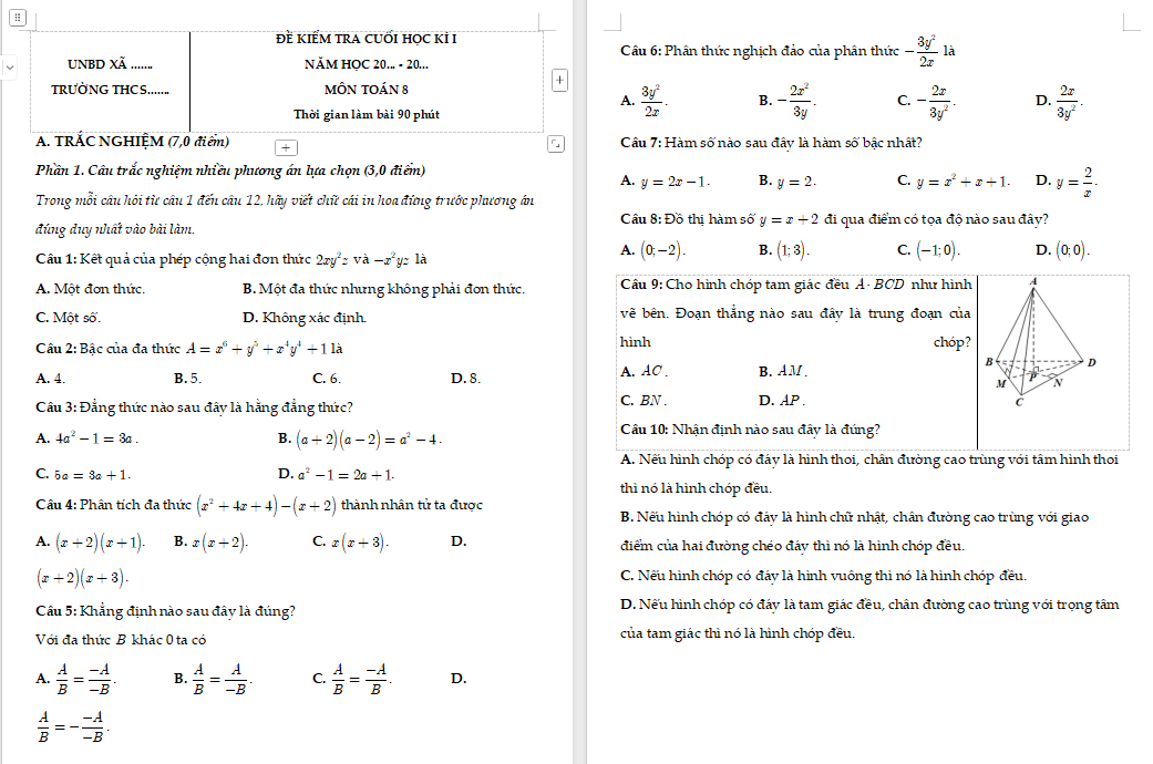 TOP 20 đề thi học kì 1 Toán 6, 7, 8, 9 Cánh diều năm 2025 gồm: