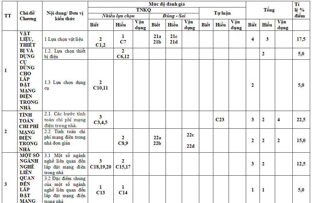 Câu 22:Chọn ĐÚNG hoặc SAI cho các phát biểu về Khi hoàn thành bảng dự toán chi phí lắp đặt mạng điện trong nhà, cần thực hiện điều gì tiếp theo?