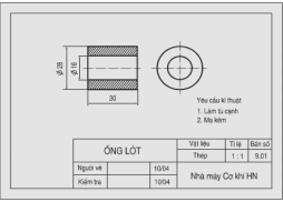 Câu 2. Đọc bản vẽ chi tiết ở hình bên và cho biết độ dày của thành ống lót?