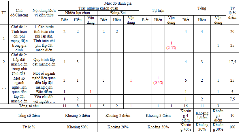 c. Lập bảng thống kê số lượng vật liệu, thiết bị lắp đặt mạng điện là không cần thiết trong tính toán chi phí lắp đặt mạng điện. |