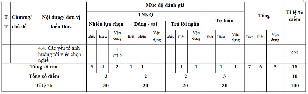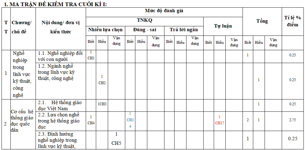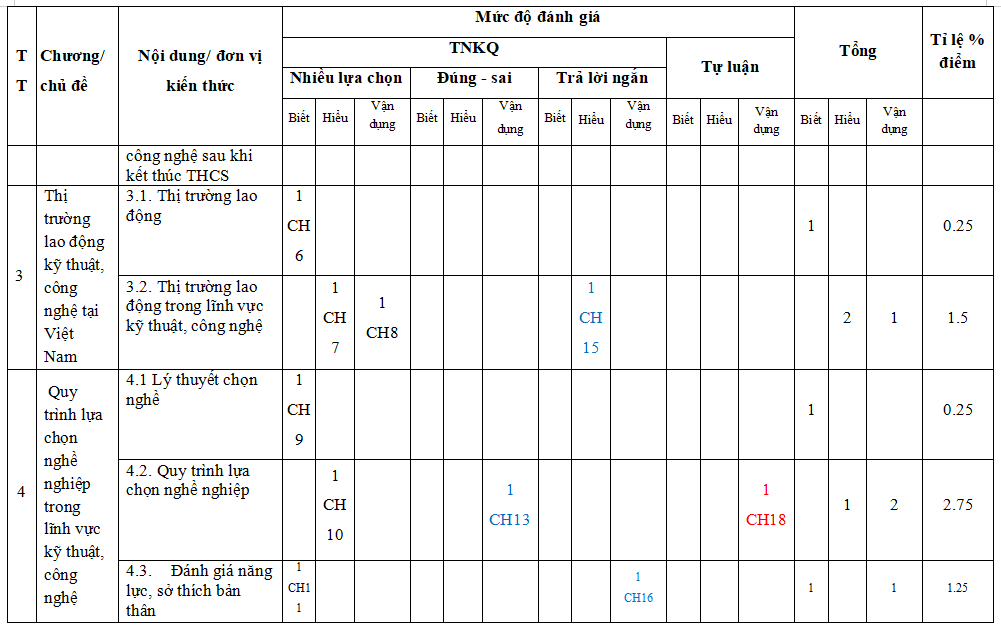Xem đầy đủ bản đặc tả đề thi trong file tải về