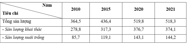 Sản lượng thuỷ sản của vùng Đông Nam Bộ giai đoạn 2010 – 2021