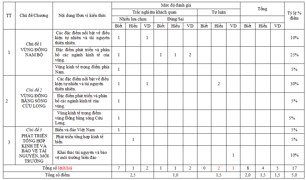 Tìm hiểu thêm »Đề thi cuối học kì 2 Địa lí 9 Kết nối tri thức năm 2026 tổng hợp 5 đề kiểm tra có đầy đủ ma trận, bản đặc tả và đáp án đề thi, giúp các em học sinh thuận tiện so sánh đối chiếu với bài làm của mình.