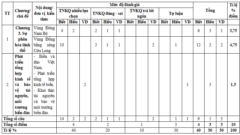Xem đầy đủ bản đặc tả đề thi trong file tải về