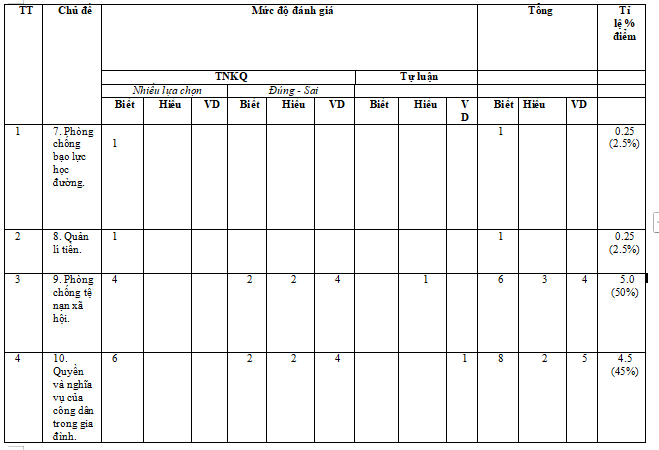 Lưu ý: Đề thi cuối kì 2 GDCD 7 Kết nối tri thức có cấu trúc như sau. Tùy theo yêu cầu của từng Sở mà thầy cô ra đề cho các em nhé.
