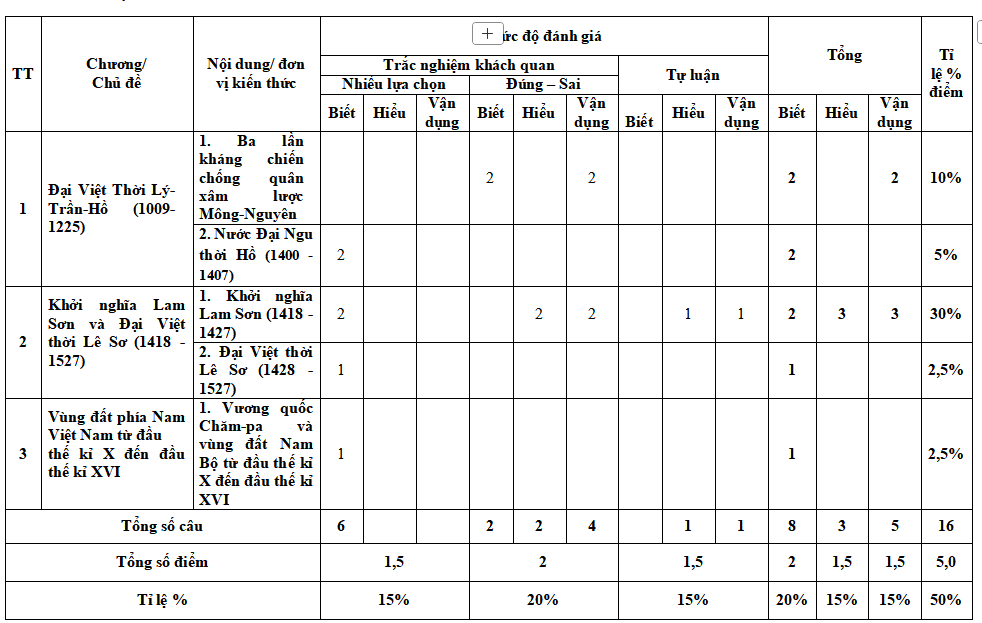 Ma trận đề thi học kì 2 Lịch sử và Địa lí 7