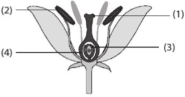 Câu 15: Hình dưới đây thể hiện sơ đồ cấu trúc hoa. Quá trình thụ phấn xảy ra ở đâu?
