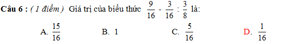 Câu 5: (1 điểm) Giá trị của biểu thức 36576 : (4 x 2 ) – 3708 là :