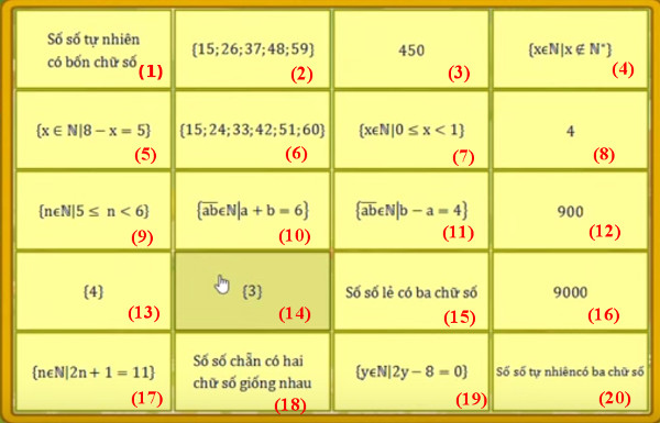 Câu 3.4: Cho G là tập hợp các số tự nhiên có hai chữ số mà chữ số hàng chục nhỏ hơn chữ số hàng đơn vị là 6. Số phần tử của tập hợp G là: ................