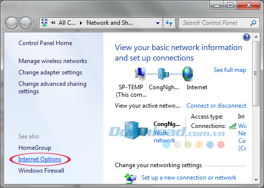 Bước 2: Trong cửa sổ mới hiện ra, kéo xuống phía dưới cùng bên trái màn hình chọn Internet Options.