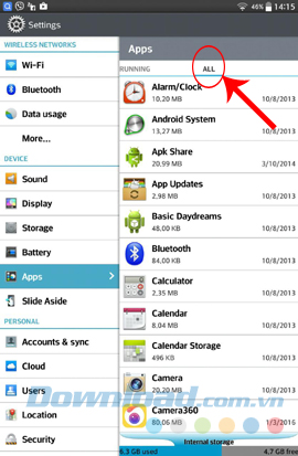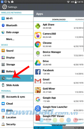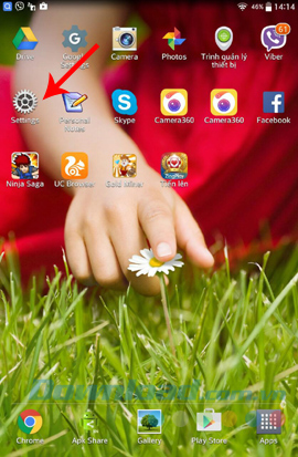 Bước 1: Từ giao diện chính của thiết bị, chạm vào biểu tượng cài đặt (hình bánh răng cưa) và chọn vào Apps.