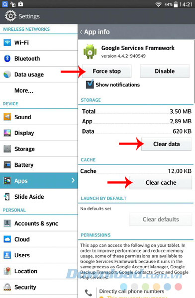 Thường thì lỗi này khá hiếm gặp, nhưng cũng là lỗi khó chịu nhất nếu không khắc phục triệt để. Cách duy nhất là tìm tới cả ba mục Google Play Store, Google Play Services, Google Services Framework và xóa dữ liệu trong đó.