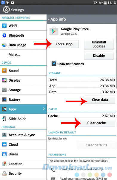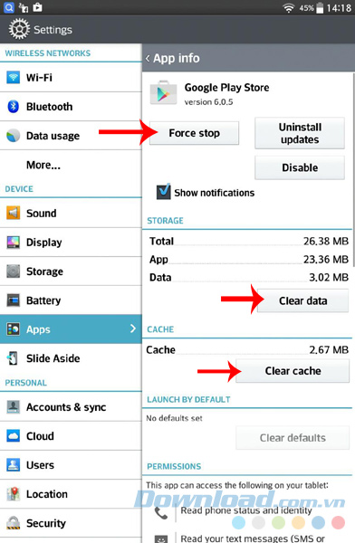 Xóa dữ liệu trong Google Play Store. Cụ thể: Vào Settings / Apps / All / Google Play Store / Clear Data (như lỗi số 2).