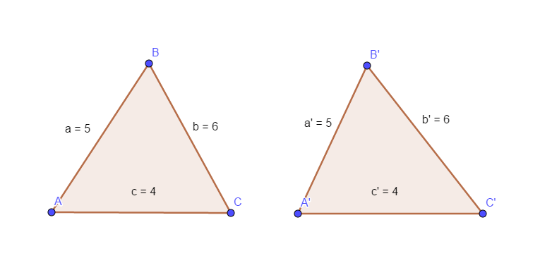 Trong trường hợp này hai tam giác đồng dạng với nhau khi ba cạnh của tam giác này bằng ba cạnh của tam giác kia. Đối với trường hợp này chúng ta sẽ không cần phải so sánh giá trị góc của hai tam giác với nhau.