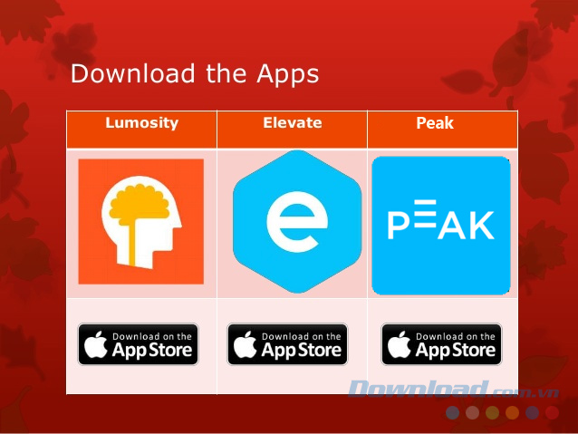 Elevate, Peak và Lumosity là 3 game trí tuệ được đánh giá rất cao từ các nhà chuyên môn. Vừa học vừa chơi, không chỉ là giải trí, mà những tựa game này còn giúp bạn luyện tập trí nhớ, tăng cường khả năng tư duy, giúp diễn đạt và đọc nhanh hơn...