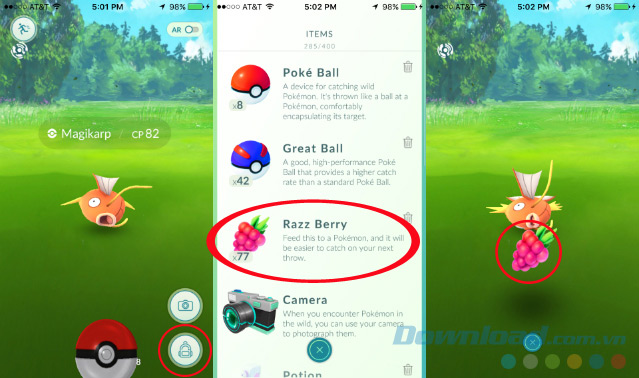 Razz Berry là loại vật phẩm có tác dụng giúp người chơi thu phục Pokemon dễ hơn và tốt hơn. Chỉ cần ném ra trước mặt Pokemon đó, nếu, nếu nhé (bởi không phải lúc nào Pokemon cũng ăn Razz Berry), Pokemon tiến tới ăn, khoảng cách giữa bạn với nó sẽ được rút gọn, dễ ném hơn và tỷ lệ thoát ra cũng giảm đi rất nhiều.