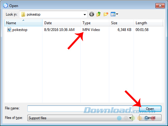 Chọn video cần thực hiện rồi Open