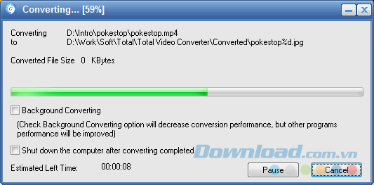 Có thể thiết lập để Total Video Converter tắt máy tính khi hoàn thành