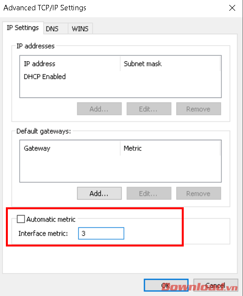 Bỏ tích ở ô Automatic metric, sau đó đặt giá trị cho Interface metric một con mà bạn muốn (tốt nhất là số càng thấp càng tốt), như ví dụ trong hình là số 3