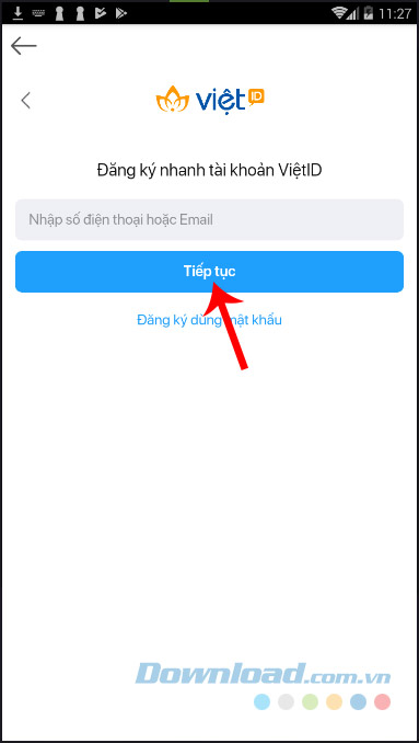 Có thể sử dụng số điện thoại hoặc email để đăng ký tài khoản Lotus. Điền vào khung "Nhập số điện thoại hoặc Email" rồi Tiếp tục.