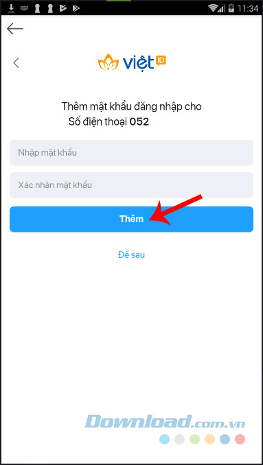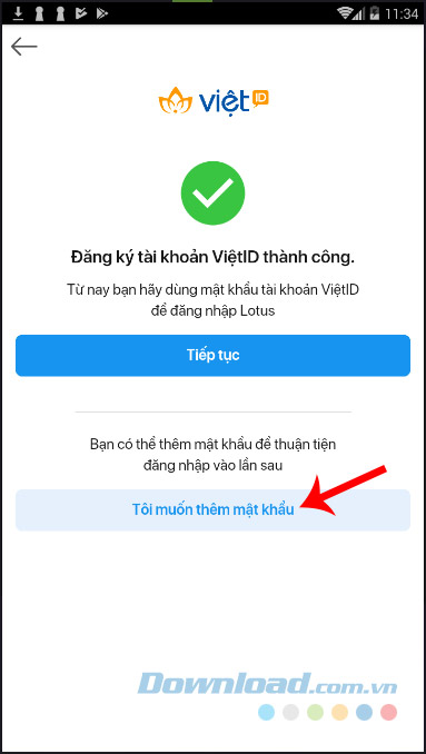 hoặc có thể chọn vào Tôi muốn thêm mật khẩu để những lần sử dụng tài khoản ViệtID sau này thuận tiện hơn. Chỉ cần Nhập mật khẩu và Xác nhận mật khẩu, sau đó Thêm / Hoàn thành là xong.