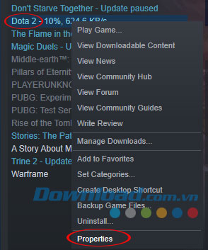 Mở Steam vào vào phần thư viện game của bạn sau đó tìm đến tựa game Dota 2.