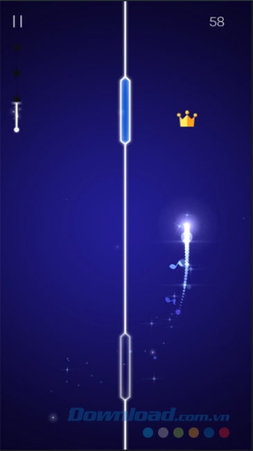 Game Dot n Beat này khá dễ chơi, các bạn chỉ cần click chuột trái trên màn hình (hoặc tap, chạm vào màn hình - nếu chơi trên điện thoại) để thực hiện động tác. Chấm sáng trên màn hình sẽ tự động di chuyển theo chiều ngang (trái - phải) sau mỗi cú click chuột.