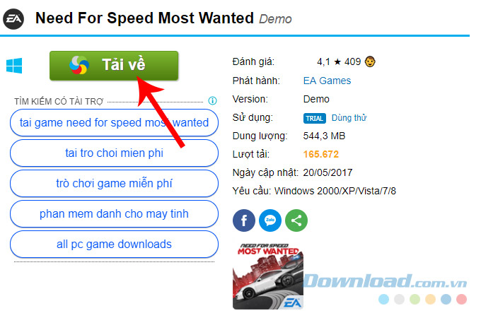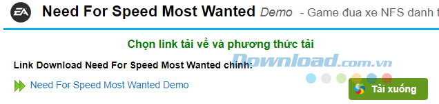 Bước 1: Các bạn truy cập vào trang hỗ trợ download Need for Speed Most Wanted và chọn chuột trái vào Tải về.