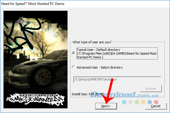 Bước 8: Chọn vị trí cài đặt game trên máy tính. Bạn có thể chọn cài luôn theo mặc định (Typical User) nếu không có kinh nghiệm, hoặc dùng tuỳ chọn Advanced User / Browse nếu muốn thay đổi sang vị trí khác.