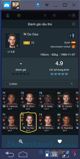 Bạn có thể biết được chỉ số về khả năng chơi bóng, các số đo chiều cao, cân nặng, Quốc tịch và đội bóng hiện tại đang thi đấu ngoài đời thật.