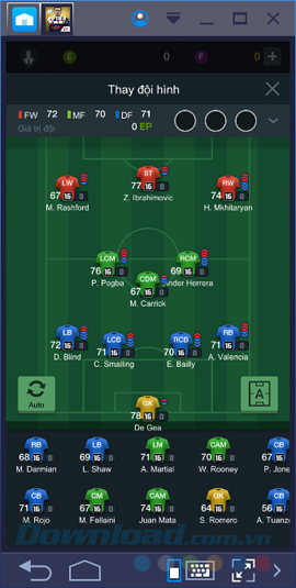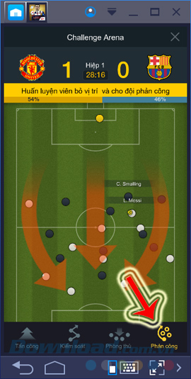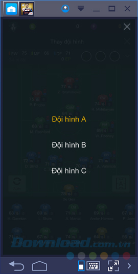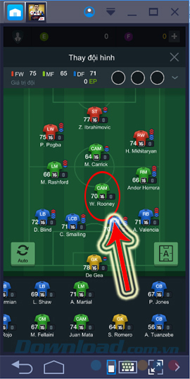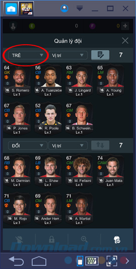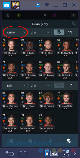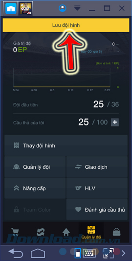 Bước 7: Với Thay đội hình, chúng ta có thể thay đổi vị trí các cầu thủ ở các tuyến (tiền đạo, tiền vệ hay hậu vệ) cho nhau. Hay cho một cầu thủ đá cao hơn, cầu thủ khác đá thấp hơn, dạt biên, trung lộ...
