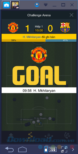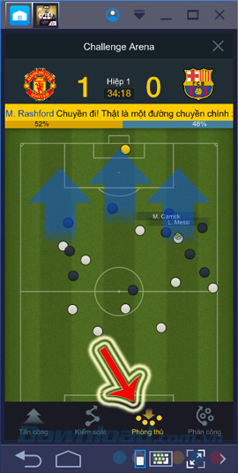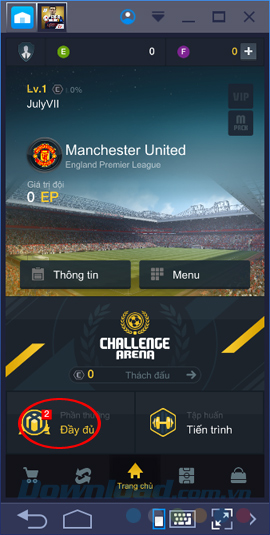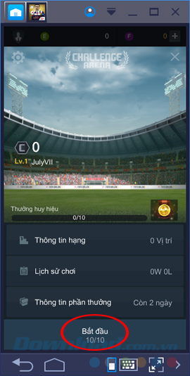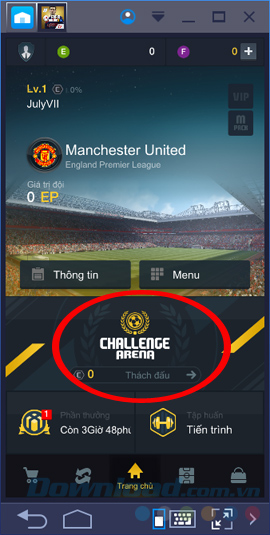 Bước 8: Sau khi hoàn tất các thao tác chuẩn bị, lên sách thi đấu, sắp xếp sơ đồ chiến thuật, bạn có thể quay về giao diện chính của game (Trang chủ), chọn vào biểu tượng Challenge Arena để Bắt đầu vào thi đấu với các đối thủ khác.