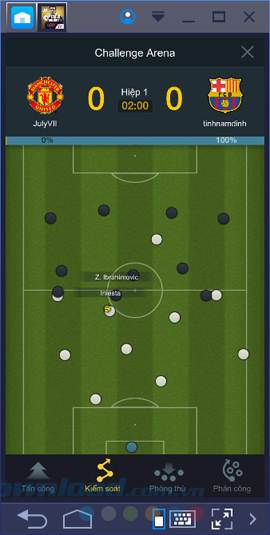 Như đã nói, đặc trưng của game quản lý bóng đá là người chơi sẽ không thể can thiệp vào từng cầu thủ trên sân, mọi hoạt động thi đấu đều được diễn ra một cách tự động. Tuy nhiên, với FIFA Online 3M, chúng ta có thể chỉ đạo chiến thuật thi đấu chung cho toàn đội ngay cả khi trận đấu đang diễn ra bằng cách click vào các biểu tượng bên dưới.