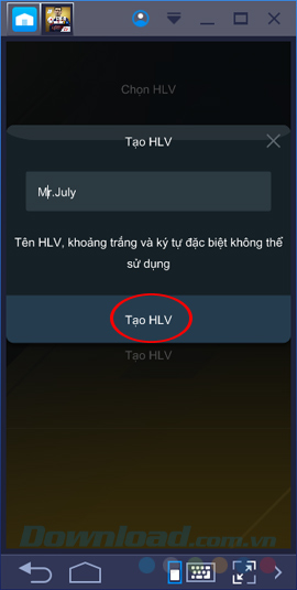 Bước 2: Click vào mục Tạo HLV và điền tên mình muốn vào khung trống ở giao diện tiếp theo rồi chọn tiếp Tạo HLV lần nữa để xác nhận.