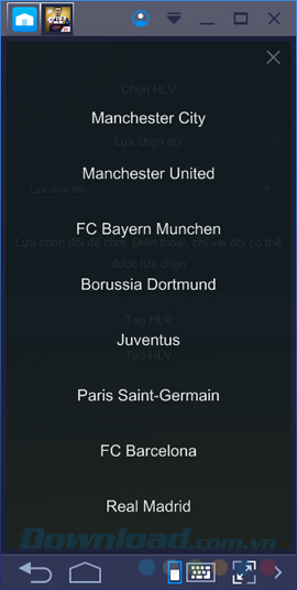 Tùy chọn đội bóng muốn dẫn dắt trong quá trình chơi game