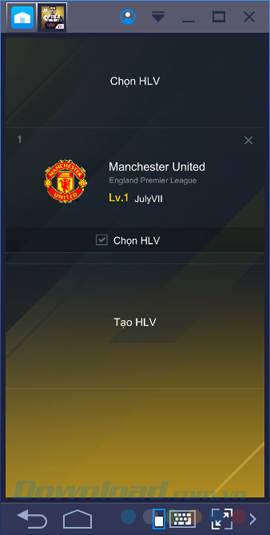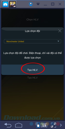 Bước 4: Chọn đội xong, tiếp tục vào Tạo HLV để vào phần quan trọng nhất, đó là sắp xếp đội hình và thi đấu.