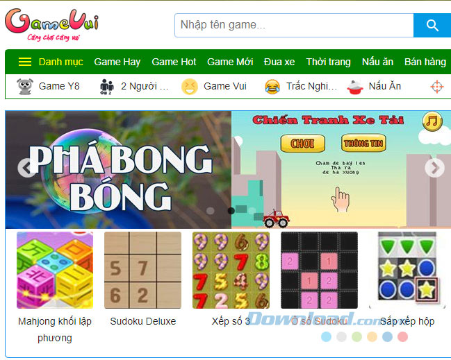 Với những người chơi game trên web gamevui.vn, các bạn cũng làm tương tự. Nhập tên game vào thanh tìm kiếm để tìm game hoặc tìm trong các gợi ý bên dưới.