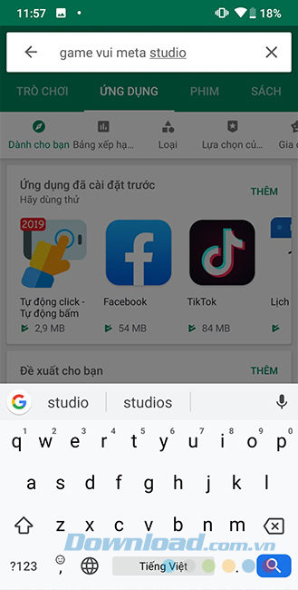 Bước 2: Nhập từ khoá "GameVui" hoặc "GameVui META Studio" vào thanh tìm kiếm rồi nhấn Enter để thực hiện.