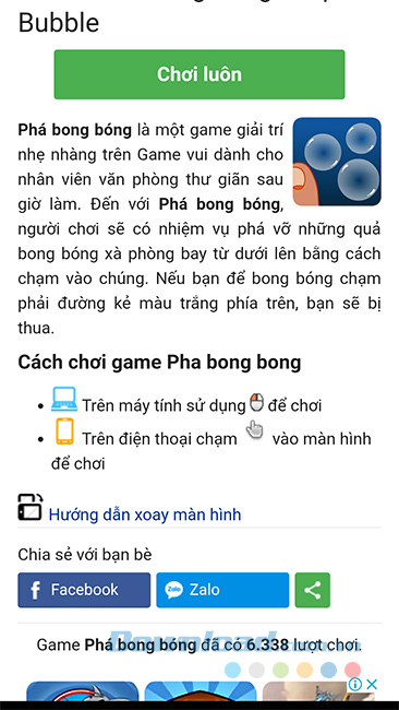 Các bạn chọn một game bất kỳ tại cổng game trực tuyến này, chạm vào đó, phần thông tin trò chơi sẽ hiển thị.