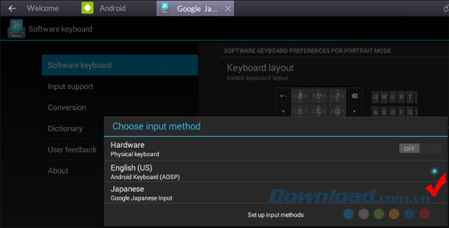 Tick vào mục Google Japanese Input để lựa chọn thêm chế độ chuyển đổi ngôn ngữ vào bàn phím.