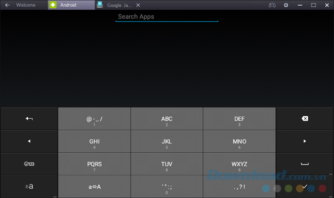 Thoát ra và thử vào lại phần tìm kiếm (Search), các bạn sẽ thấy bàn phím BlueStacks thay đổi như dưới đây.