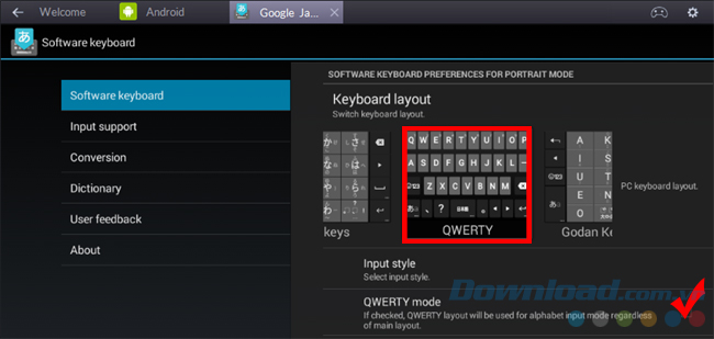 Ở đây, người viết chọn loại bàn phím QWERTY quen thuộc và đồng thời tick vào mục QWERTY mode bên dưới.