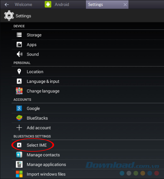 Bước 2: Ở giao diện tiếp theo, các bạn nhìn ở phía dưới, tìm và click vào mục Select IME.