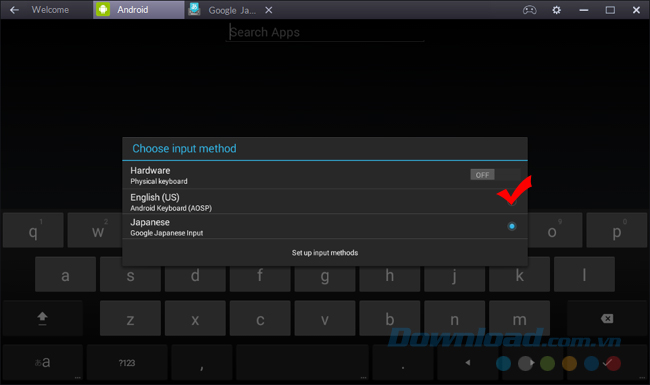 Cách gõ tiếng Việt trên BlueStacks thì các bạn đã biết, hôm nay chúng ta sẽ cùng tìm hiểu cách cài và gõ tiếng Nhật trên BlueStacks để có thể tìm kiếm và cài đặt những ứng dụng, game bằng ngôn ngữ này. Những trước hết hãy chắc chắn là các bạn đã kích hoạt bàn phím ảo cho giả lập này nhé!