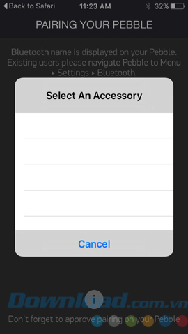 Bước 4: Quá trình tạo tài khoản và kết nối đã được thực hiện. Quay trở lại Safari, kiểm tra lần nữa xem file ngôn ngữ đã có thể mở bằng Pebble Time được chưa?