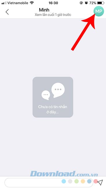 Nếu muốn chặn một người nào đó trong danh sách Fan của mình, bạn cũng làm tương tự như trên, nhưng tại bước 3 (cửa sổ chat), bạn chạm vào biểu tượng tên của họ ở góc phải màn hình như dưới đây, phần thông tin chi tiết sẽ hiện ra.