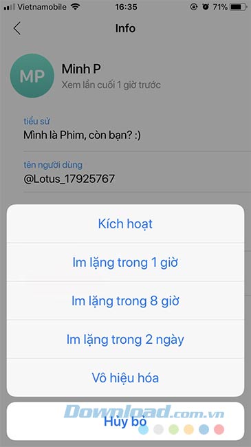 Với việc hủy thông báo tin nhắn, nếu bạn chọn "Im lặng trong... giờ", khi hết thời gian này, thông báo sẽ được bật trở lại như bình thường.