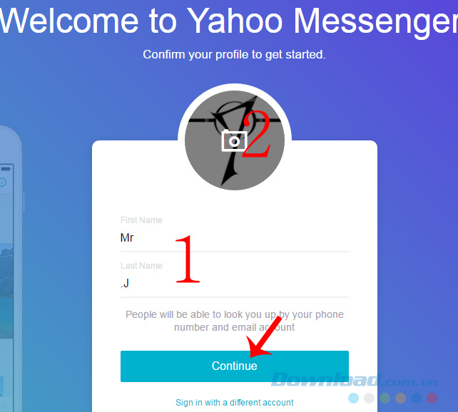Thay đổi thông tin cá nhân rồi vào Continue để tiếp tục