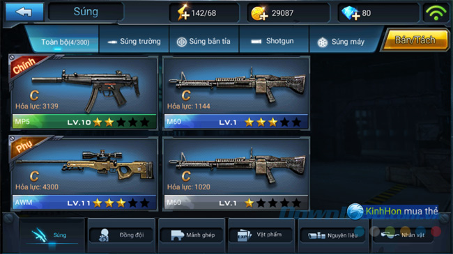 Ngoài ra, cũng có thể bán ngay súng không cần dùng để lấy Vàng.